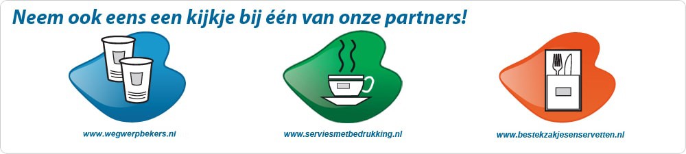 U kunt de suiker-, melk-, zakjes of sticks laten bedrukken in 1 kleur tot full colour. De bedrukte artikelen zijn al vanaf 3.000 stuks te bestellen.